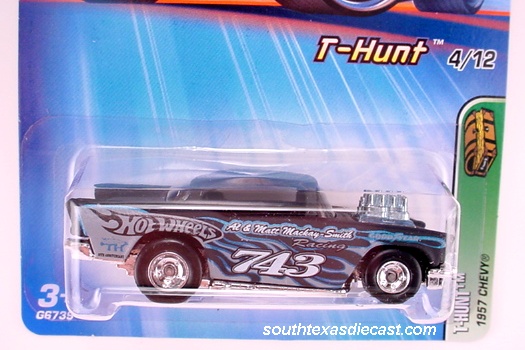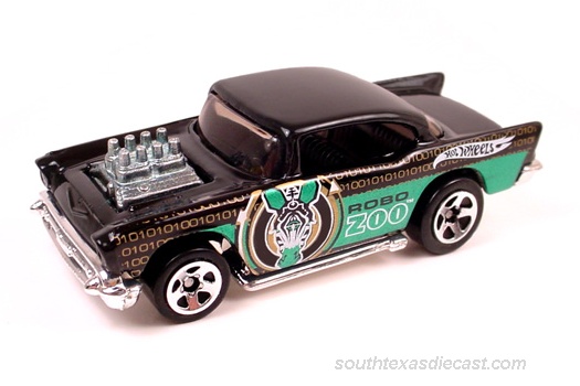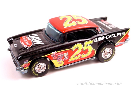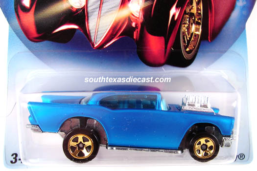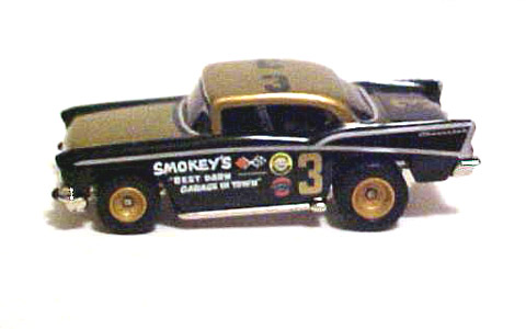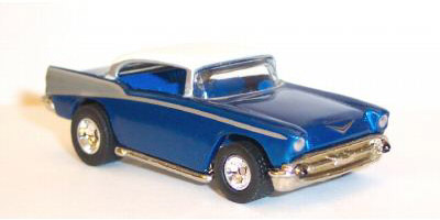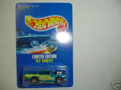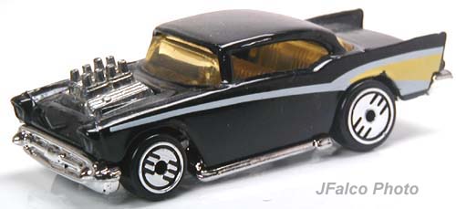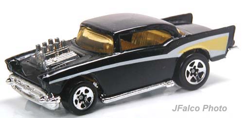 Black, w/Yellow & White tampos w/''57 Chevy' on sides, Clear Blue interior, Blue Tint Window, Chrome Hong Kong Base, w/BW's
