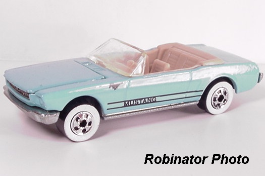 Lt. Blue, w/Black stripes, 'Mustang', & Mustang logo on sides, Tan Interior, Unpainted Malaysia Base, w/WW's