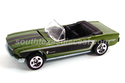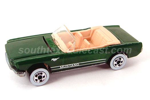 Dk. Green, w/White stripes & 'Mustang' on sides, Tan interior, Clear Window, Unpainted Malaysia Base, w/WWBW's