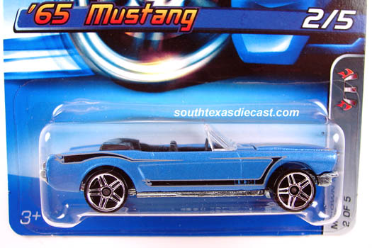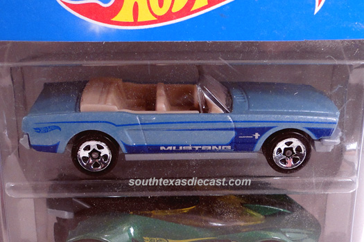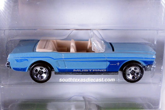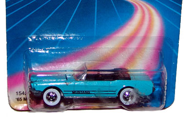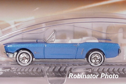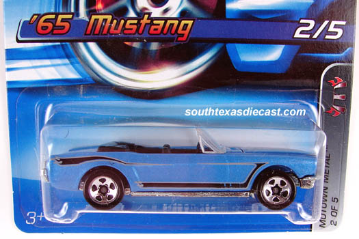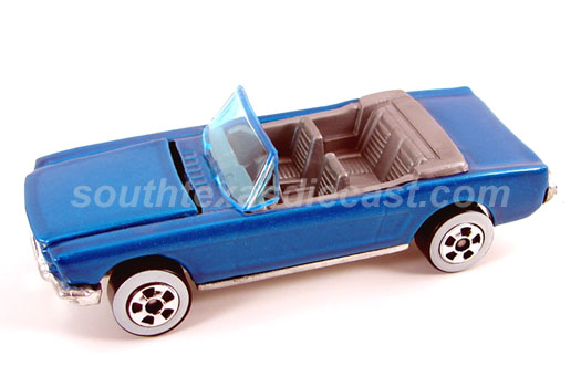 Mtflk. Blue, w/White stripes, 'Mustang', & Mustang logo on sides, Tan Interior, Unpainted Malaysia Base, w/WW's