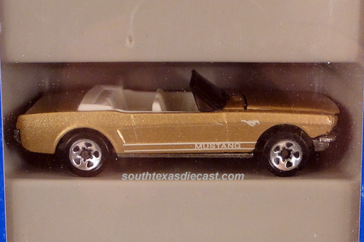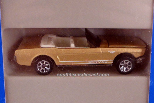 Pale Yellow, w/Mustang emblem & '289' on sides, detailed headlights, taillights, & side markers, Black Interior, Unpainted Malaysia Base, w/WLRR's