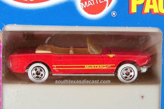 Red, w/Yellow stripes & 'Mustang' on sides, Beige interior, Clear Window, Unpainted Malaysia Base, w/WW's