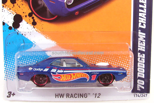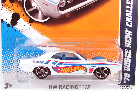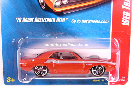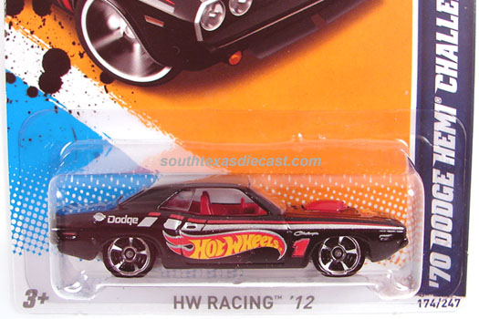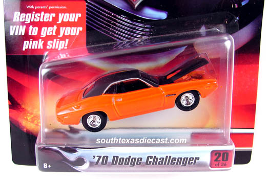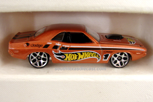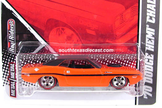 Orange, w/Matte Black roof, Black stripe, 'Challenger' on sides, Black Interior, Unpainted Malaysia Base, w/RLRRLW5's