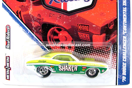 Pearl White, w/Lt. Green roof, Race deco, Lt. Green & Green stripes on sides & hood, 'Continental Shaker' on sides, Lt. Green Interior, Unpainted Thailand Base, w/GYRRMag's