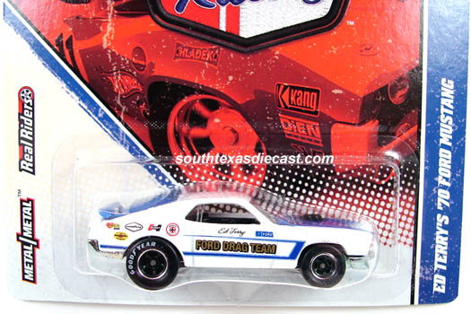 White, w/Blue hood, Race deco, 'Ford Drag Team' on sides, Black Interior, Unpainted Thailand Base, w/GYChr/GreyRR5SP's
