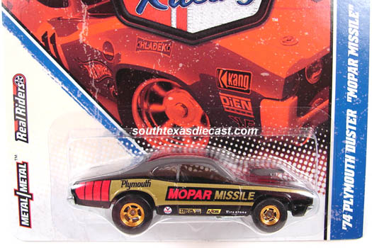 Black, w/Race deco, Gold & Red stripes, 'Mopar Missile' on sides, Black Interior, Unpainted Thailand Base, w/GoldRRMag's