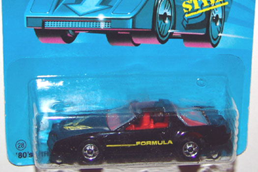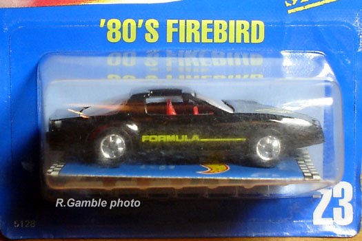 Black, w/Yellow 'Formula' on sides, Yellow Firebird emblem on hood, Red interior, Clear Window, Black Malaysia Base, w/BW's