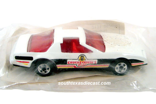 White, w/Black, Red, & Yellow stripes & 'Chuck E Cheese's Pizza' on sides , Red Interior, Black Malaysia Base, w/BW's