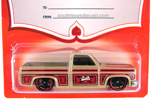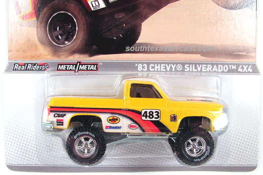 Spectraflame Brown, w/Cream & Silver stripes on sides & tailgate, Silverado logo on sides, 'Chevrolet' on tailgate, 'Real Riders Off-Road' on tires, Beige Interior, Chrome Metal Malaysia Base, w/ORRRPrf's
