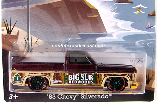 Mtflk. Burgundy, w/Yellow, White, Green, & Gold deco, 'Big Sur Redwoods' & Highway 1 shield on sides, Gold deco on hood & roof, Black Interior, Gold Chrome Malaysia Base, w/ChrRed/BlackPR5's