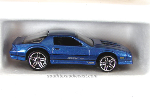 Mtflk. Blue, w/Black stripe, Silver 'IROC-Z' on sides, Black Thailand Base, w/PR5's