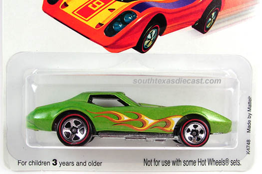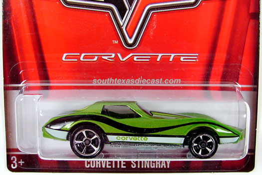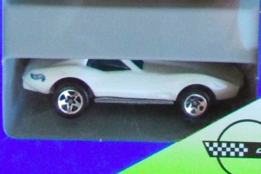 Mtflk. Lime Green, w/Black & White stripes on sides, hood, & trunk, 'Corvette' on sides & hood, Black interior, Unpainted Malaysia Base, w/MC5's