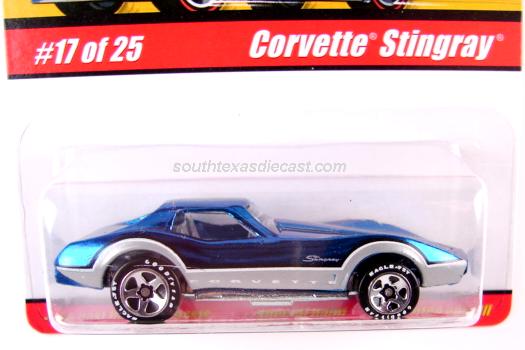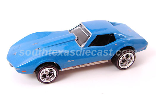Mtflk. Blue, w/Silver 'Stingray' on sides, '427' on hood, & Corvette emblem on hood & trunk, Clear Windows, Black Interior, Unpainted China Base, w/RLRR5SP's