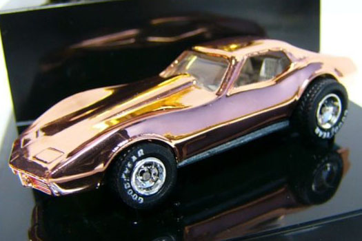 Gold Chrome, w/Orange & White tampos on hood and roof, Clear Blue interior, Blue Tint Window, Unpainted Hong Kong Base, w/BW's