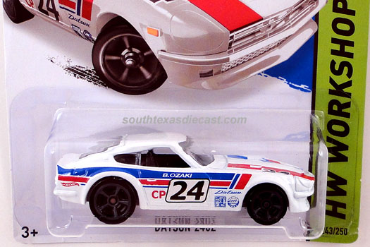 White & Red, w/Red & Blue stripes on sides & across top, '24' on sides, 'Datsun' on hood, Grey Malaysia Base, w/Chrome/BlackMC5's