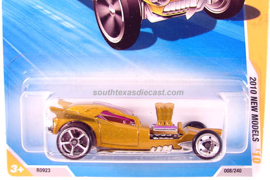 Anodized Gold, w/Matte Black roof, Gold & Beige tampos, stripes & HW Halloween logo on sides, stripes across top, Unpainted Malaysia Base, w/Gold/BlackPR5/SK5's