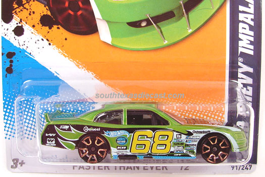 2010 Faster Than Ever #08 | Mtflk. Green, w/White & Gold stripes on hood & trunk, 'SS 396' & HW logo on sides, Chrome Malaysia Base, w/FTE's | $0.00 | $0.00 | |