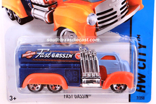 Black, w/Day-Glo Orange tank, Red fenders, Black, Red, White, & Silver tampos, 'Fast Gassin' & flames on sides, Black Malaysia Base, w/OH5SP's