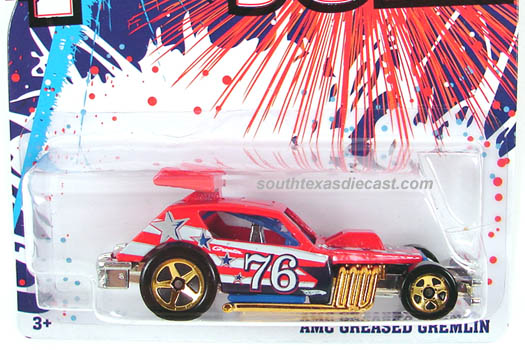 2010 Fourth of July Cars | Red, w/White, Blue, & Silver tampos, '76', stars, & stripes on sides & hood , Unpainted Malaysia Base, w/Gold5SP's | $0.00 | $0.00 | |