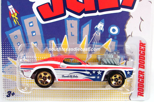 2010 Fourth of July Cars | Satin Blue, w/Red, White, & Blue tampos, '7', stars, & stripes on sides & hood , Unpainted Malaysia Base, w/10SP's | $0.00 | $0.00 | |