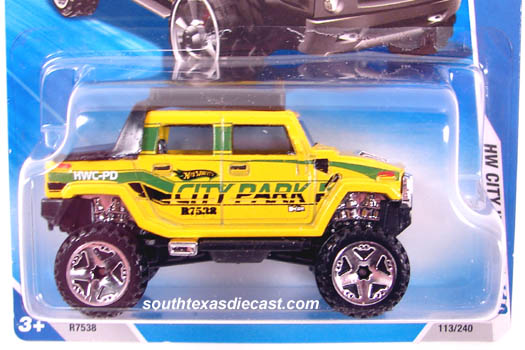 Pearl Yellow, w/Green, Black, & White tampos, 'City Park' & 'HWC-PD' on sides, Black Malaysia Base, w/OR5SP's