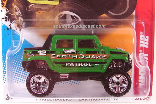 Green, w/Orange, Black, & White tampos, 'Earthquake Patrol' & '12' on sides, Black Malaysia Base, w/OR5SP's