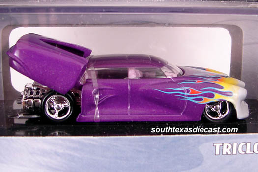 2000 Cool Collectibles | Mtflk. Purple, w/White, Yellow, Orange, & Red flames on sides & hood , White Interior, Black China Base, w/CC's | $5.00 | $8.00 | |