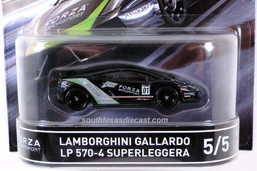 Black, w/Green, Grey, White, & Red deco, Forza Motorsport deco on sides & hood, '01' on sides, Grey Interior, Black Malaysia Base, w/BlackRR10SP's
