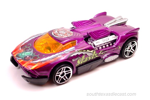 Mtflk. Purple, w/Orange, Yellow, & Green tampos on sides & hood, Black Malaysia Base, w/PR5's