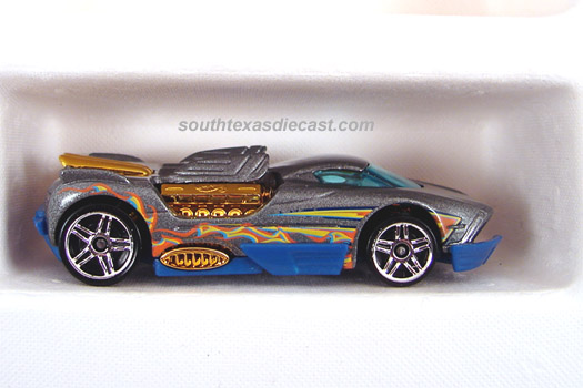 Mtflk. Grey, w/Orange, Yellow, Blue, & Dk. Blue stripes & flames on sides, Blue Malaysia Base, w/PR5's