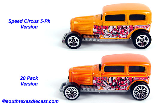 Satin Grey, w/Red, Orange, Blue, & Black tampos, Red '3' on front, 'Hot Parts Speed Shop' on sides, pinstripe design on rear, Tinted Window, Unpainted China Base, w/RR5SP's