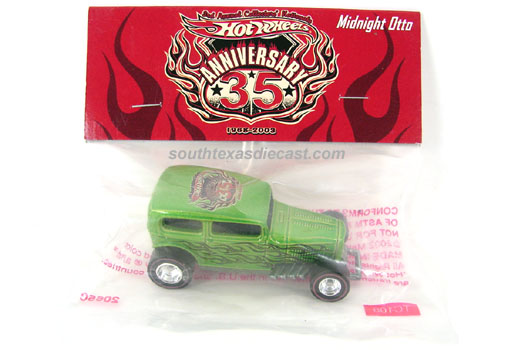 Green & Blue, w/Red, Yellow, & Blue flames on sides, 'Early Times Mid-Winter Rod Run' on roof, '2002' & HW logo on rear, Black Malaysia Base, w/RR's