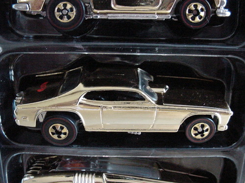 Mtflk. Dk. Blue w/Hot Wheels logo in Red, Tom McEwen & Mongoose II on side, Flames on hood, w/Brown, White, Yellow, Red, Blue racing logos, w/RL's