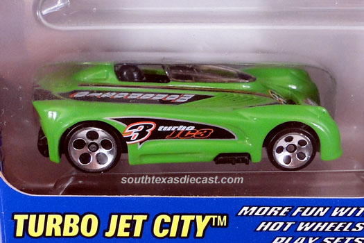 Green, w/Black, Orange, & White tampos, 'Turbo JC3' & '3' on sides, 'Monoposto' & stripes across top, Black interior, Black China Base, w/5DOT's