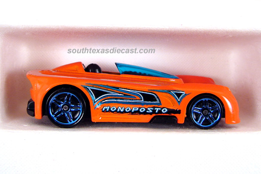 Orange, w/Black, White, & Blue stripes & 'Monoposto' on sides, Black Malaysia Base, w/ChrBluePR5's