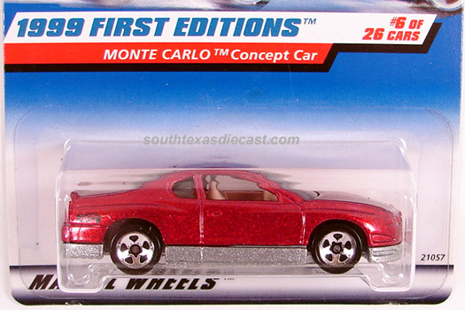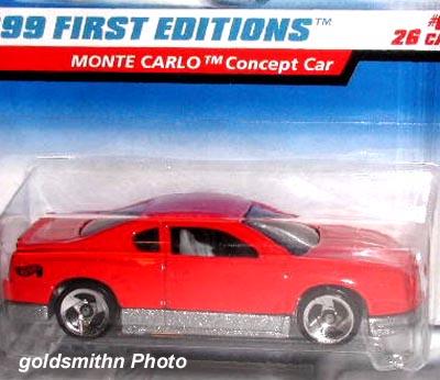Yellow, w/Red & Black tampos w/Chevy logo & 'Monte Carlo' on sides & hood, Gold HW logo on rear quarter panel, Black interior, Black China Base, w/5SP's