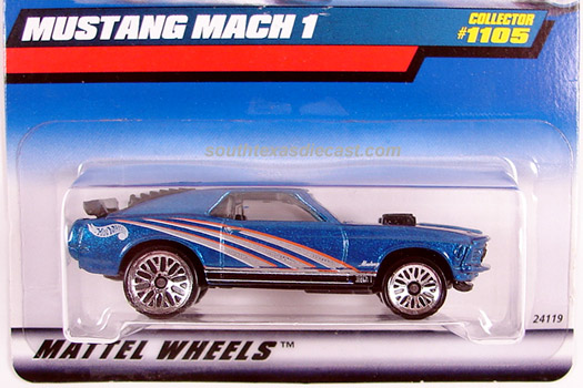 Spectraflame Steel Blue, w/Black Stripe w/White 'Mach 1' on sides, Black Hood , Black Interior, Unpainted Thailand Base, w/GY7SP's