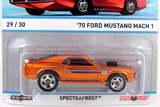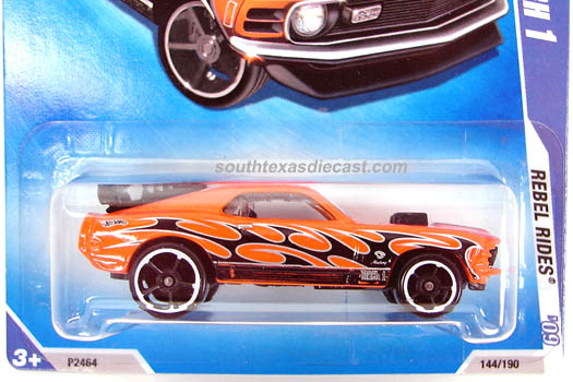 Spectraflame Orange, w/Black Stripe w/White 'Mach 1' on sides, Black Hood , Black Interior, Unpainted Thailand Base, w/GY7SP's