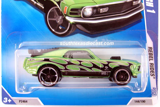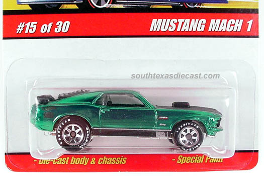 Spectraflame Green, w/Black Stripe w/White 'Mach 1' on sides, Black Hood , Black Interior, Unpainted Thailand Base, w/GY7SP's