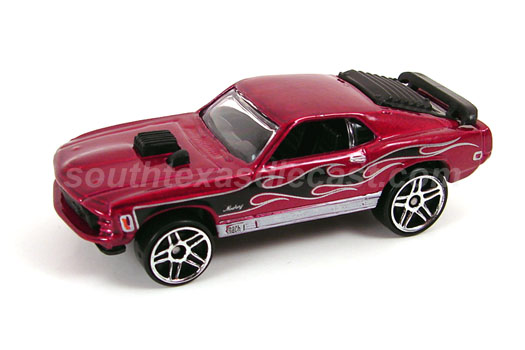 Mtflk. Dk. Red, w/Silver trim w/'Mustang' & 'Mach 1' on sides, Black stripes on hood, Black China Base, w/GYRR's