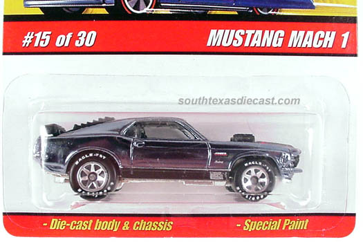 Spectraflame Magenta, w/Black Stripe w/White 'Mach 1' on sides, Black Hood , Black Interior, Unpainted Thailand Base, w/GY7SP's