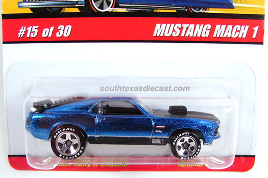 Spectraflame Dk. Blue, w/Black Stripe w/White 'Mach 1' on sides, Black Hood , Black Interior, Unpainted Thailand Base, w/GY7SP's