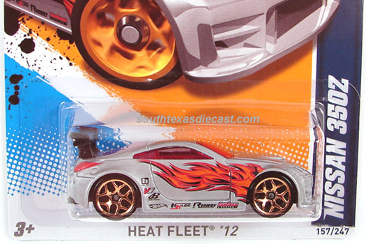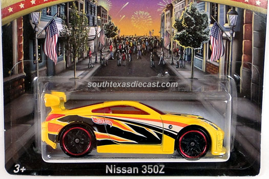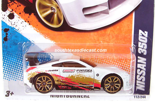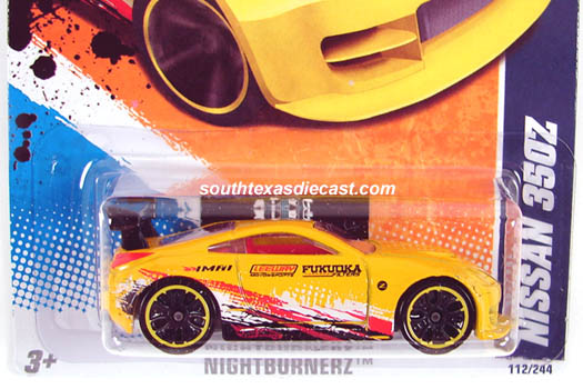 Yellow, w/Black, Red, White, & Orange stripes on sides & hood, Nissan emblem on front & rear, '350Z' on rear , Dk. Chrome Malaysia Base, w/ChrRed/BlackPR5's