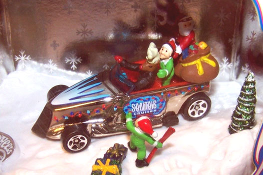Chrome, w/Red, White, & Blue tampos w/'Santa's Cruiser' & holiday lights on sides, Blue, Lt. Blue, & White tampo on hood, Black China Base, w/5SP's