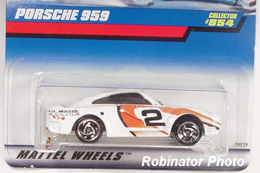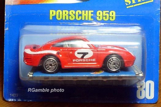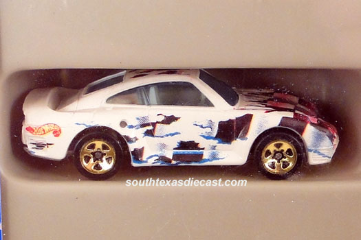 White, w/Blue & Red Stripes, w/'Porsche 959' on sides , Black interior, Blue Tint windows, Unpainted Malaysia Base, w/BW's