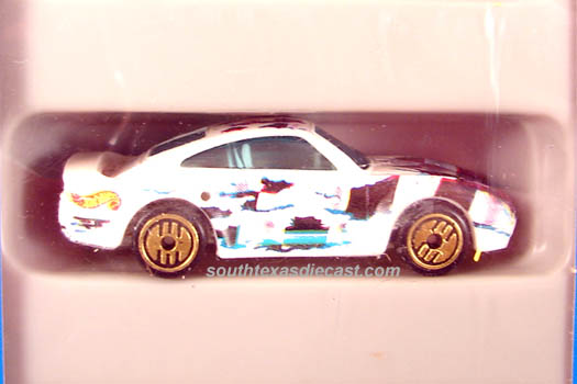 White, w/Black & Blue tampo on sides, Black, Pink, & White checkered flag tampo on hood & roof, White interior, Blue Tint Window, Unpainted Malaysia Base, w/GoldUH's