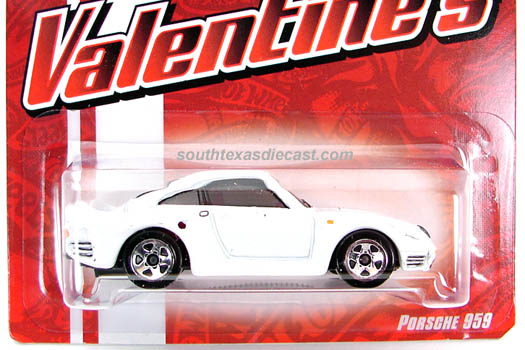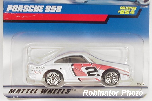 White, w/Blue & Red Stripes, w/'Porsche 959' on sides , Black interior, Clear windows, Unpainted Malaysia Base, w/BW's