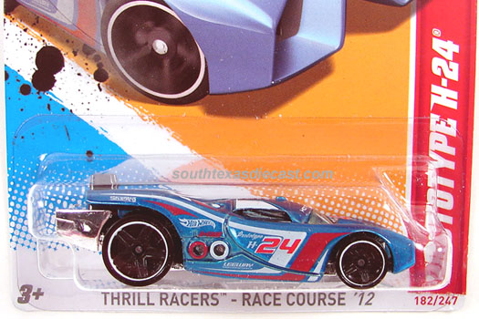 2012 Thrill Racers - Race Course #2 | Mtflk. Lt. Blue, w/Red & White stripes on sides & across top, '24' on sides & hood, Chrome Malaysia Base, w/White/BlackPR5's | $0.00 | $0.00 |
