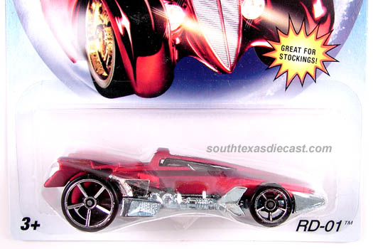 Mtflk. Red, w/White, Blue, & Silver tampos, 'RD 01' on sides, Unpainted Malaysia Base, w/PR5's