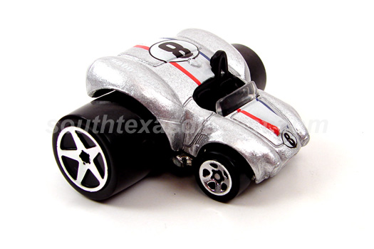 Mtflk. Silver, w/White, Red, & Blue stripes across top, '8' on trunk, Black interior, Unpainted Malaysia Base, w/5SP's